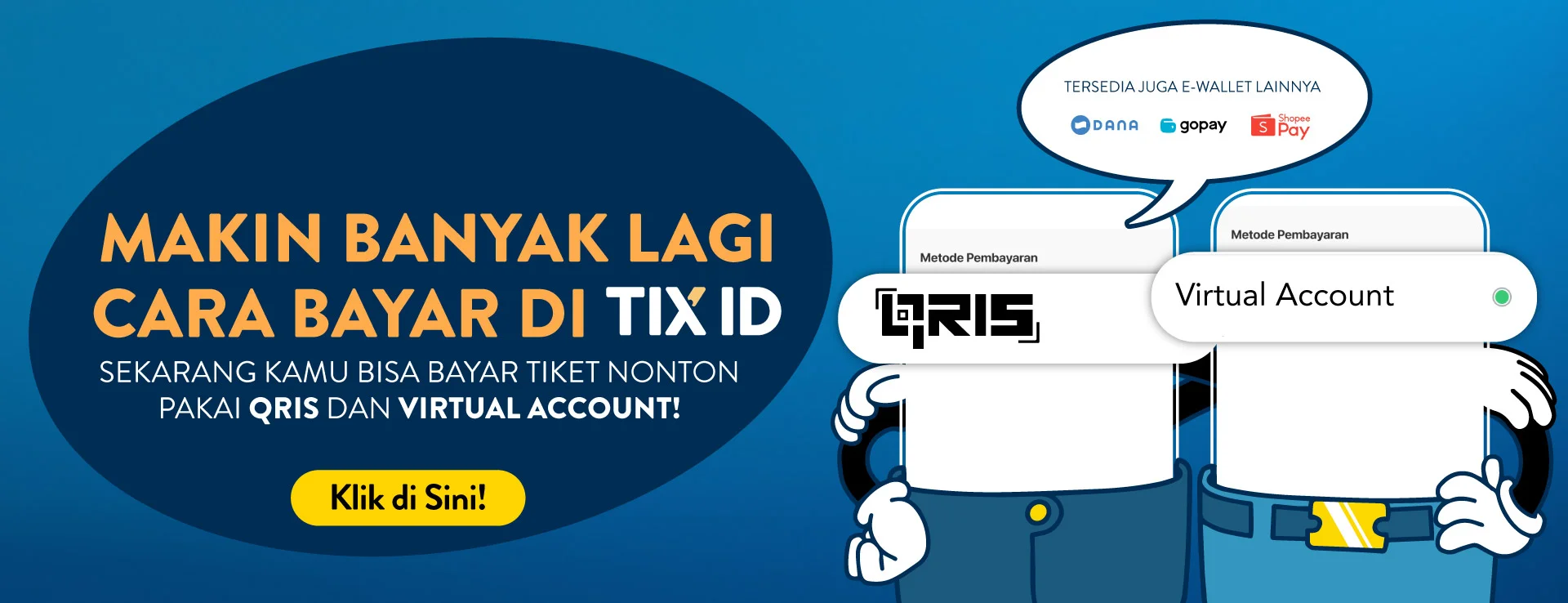 Sekarang kamu bisa transaksi pakai Virtual Account dan Qris di TIX ID loh! Update aplikasi TIX ID kamu ke versi 3.9.0 dan transaksi dengan metode pembayaran favoritmu!